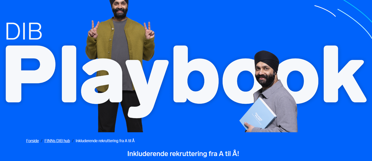 'Endelig er den her! DIB Playbook (en guide til mangfold, inkludering og tilhørighet på arbeidsplassen) skal styrke og støtte deg som ansetter. Nå har du sjansen til å gjøre bedriftens prosedyrer så gode og inkluderende som mulig' ! (Inkluderende rekruttering fra A til Å | FINN for bedrifter)